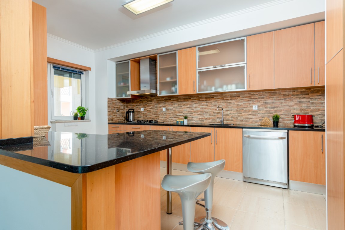 Totalmente equipada, frigorifico americano e ligação com alpendre para zona de refeições exteriores e churrasqueira.