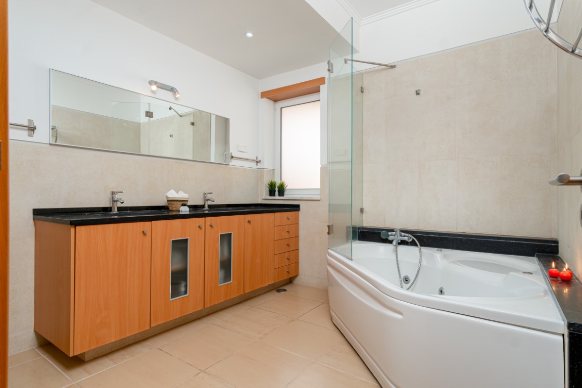 Com zona de closet e casa de banho com banheira de hidromassagem, ar condicionado.